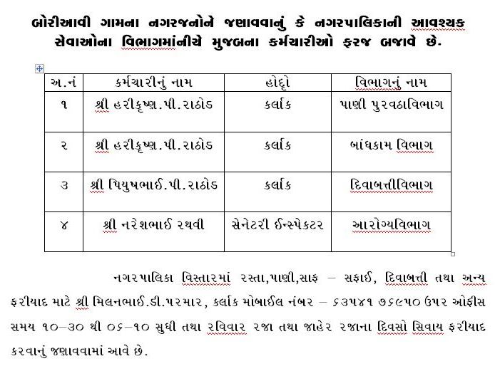 સંપર્ક:- બોરીઆવી નગરપાલિકા, બોરીઆવી